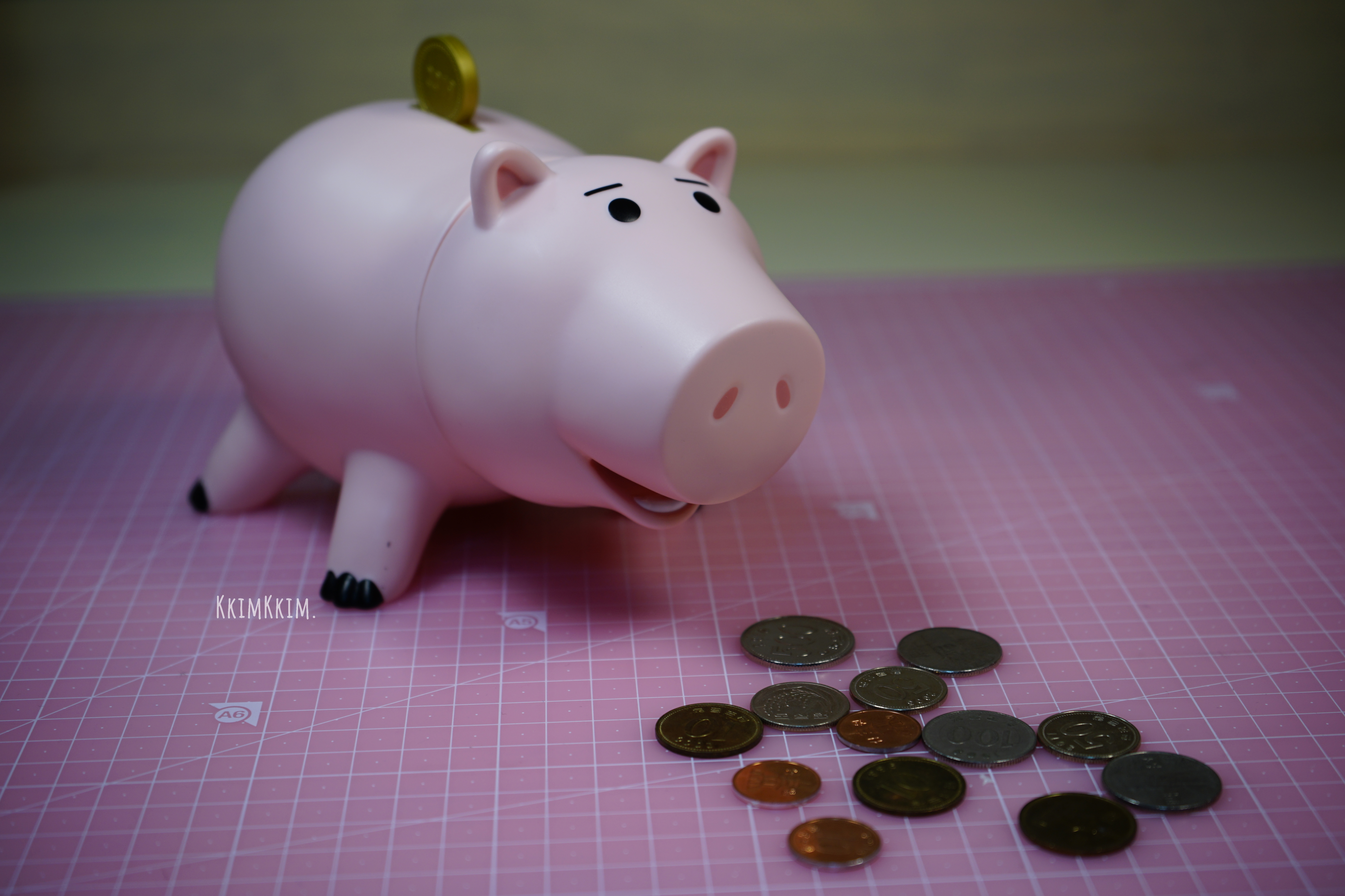 원작 토이스토리에서 햄의 안에 있던 동전들이 쏟아져 나오는 장면들이 간혹 연출되곤 하는데요! 그런 느낌을 표현해보고 싶어서 동전들을 놓아봤어요 ㅋㅋ
