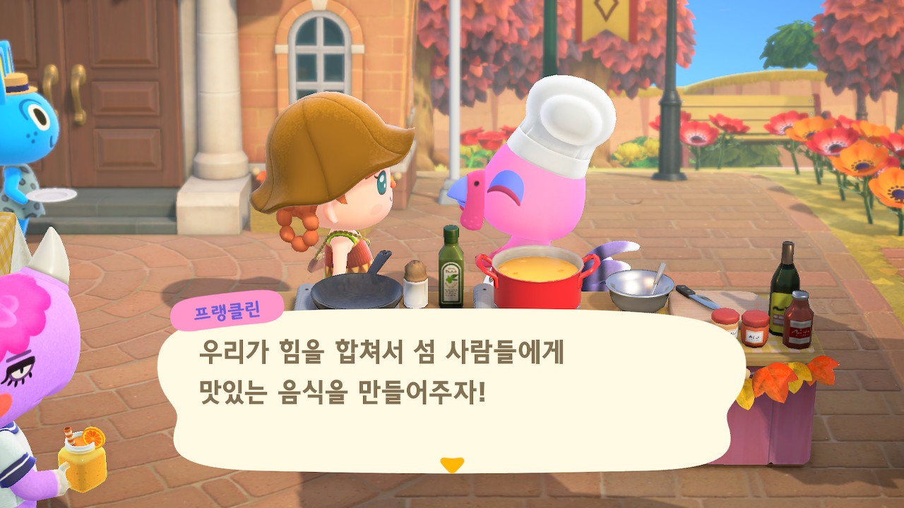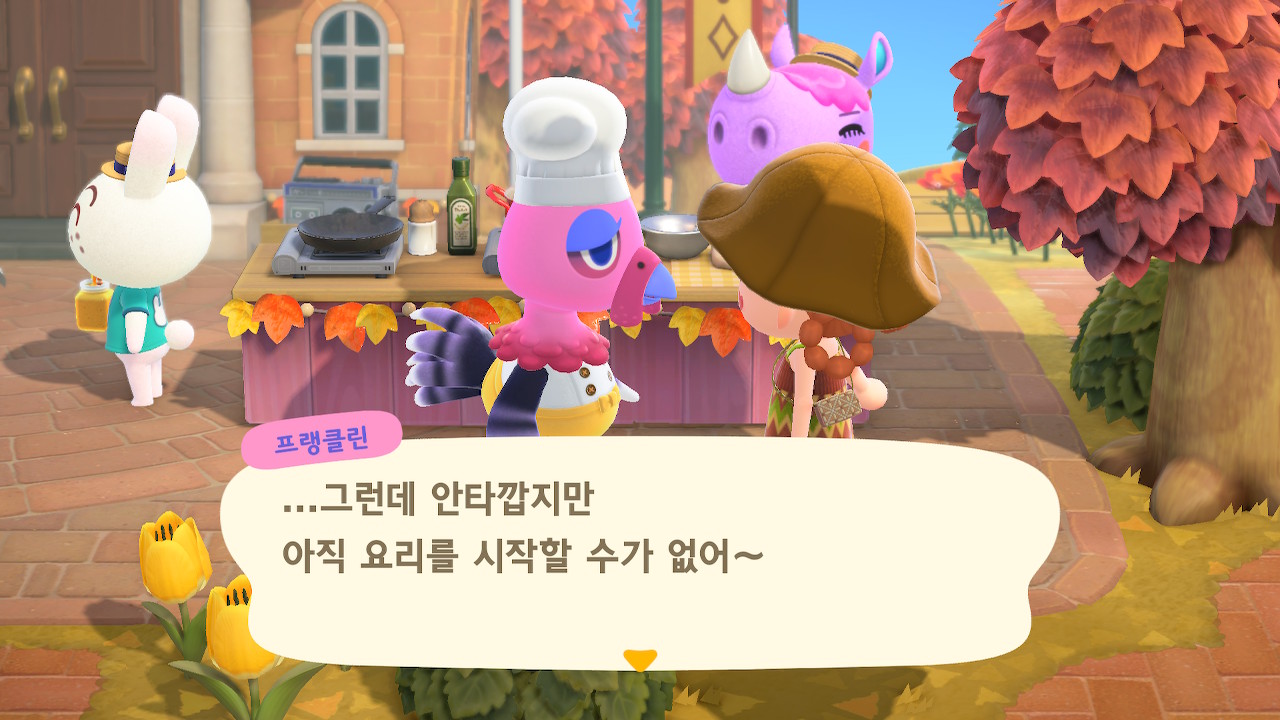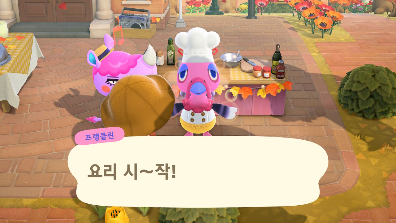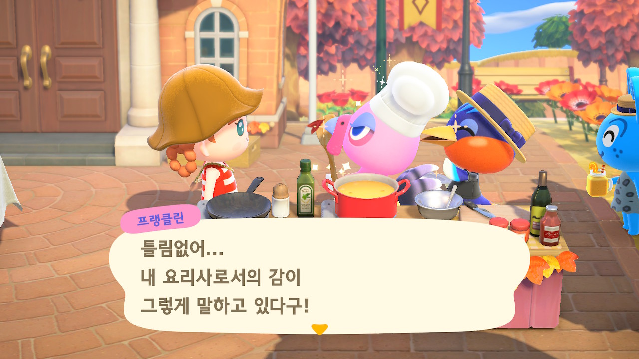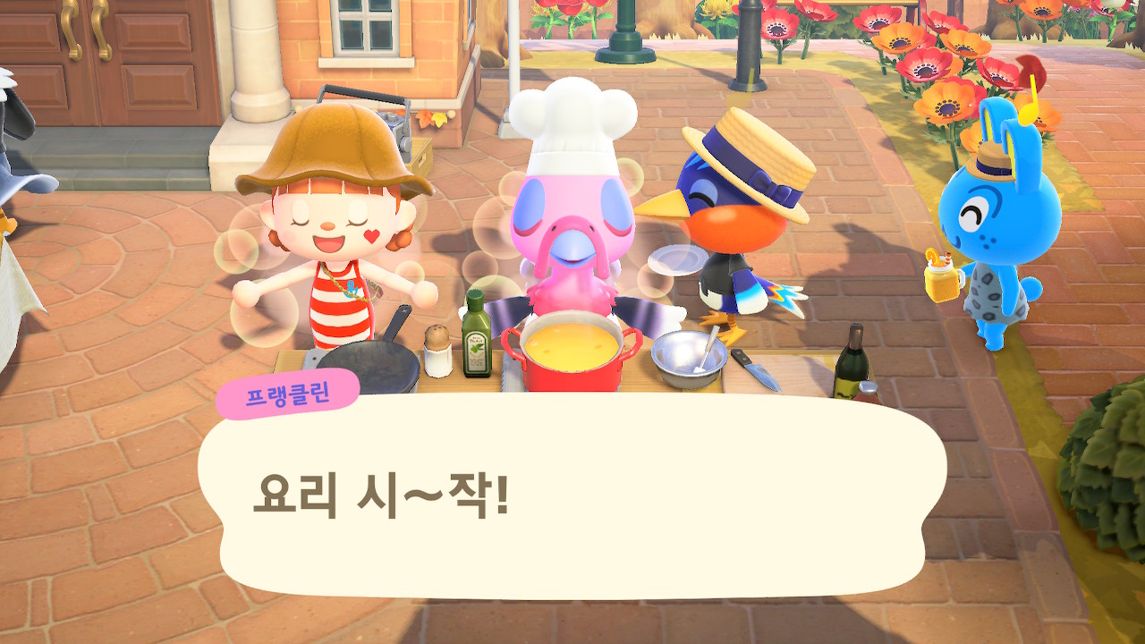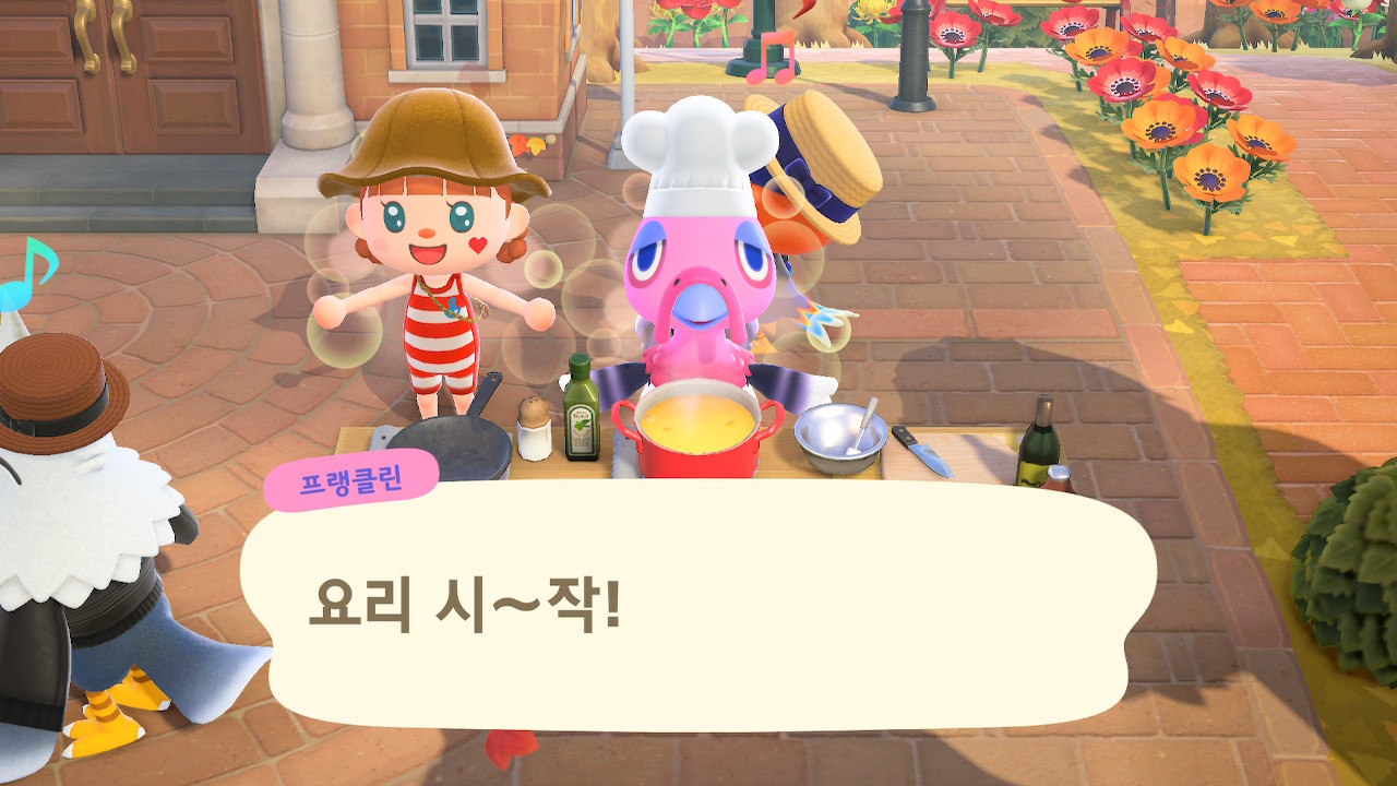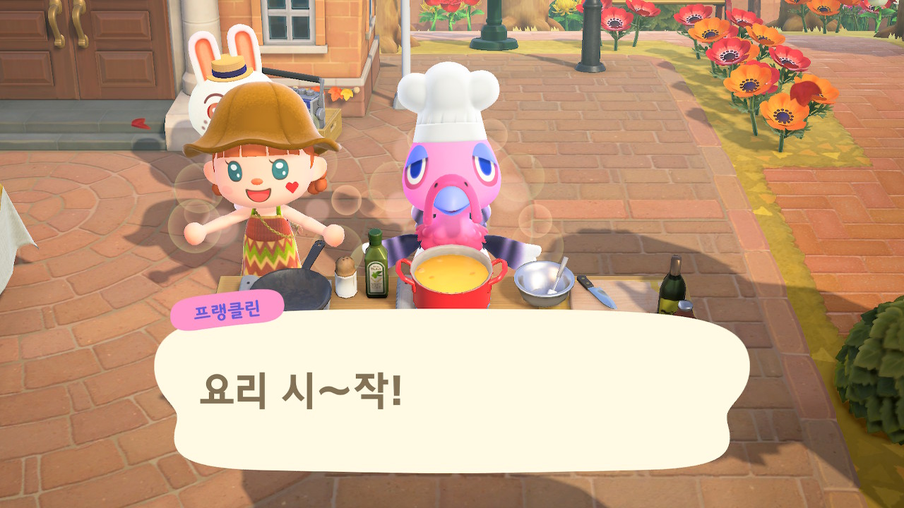 귀엽게 요리사 복장을 하고 요리하고 있는 주민을 발견할 수 있는데요
