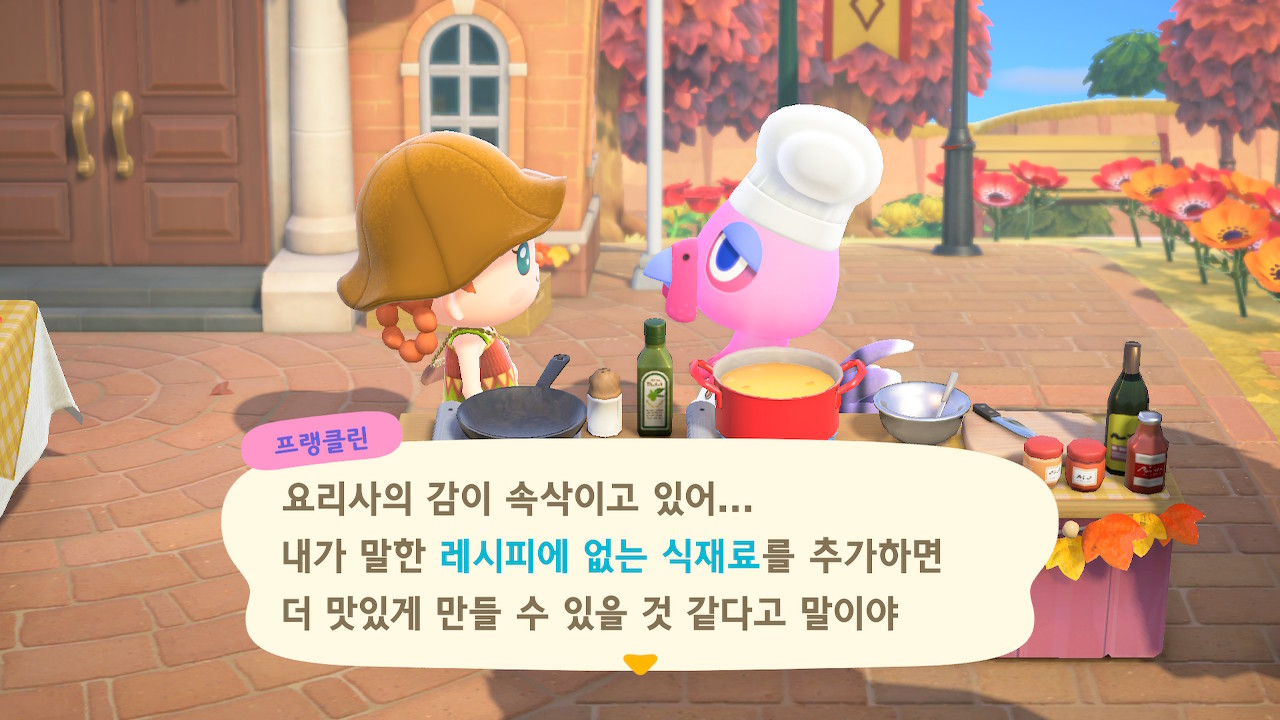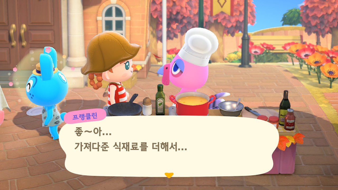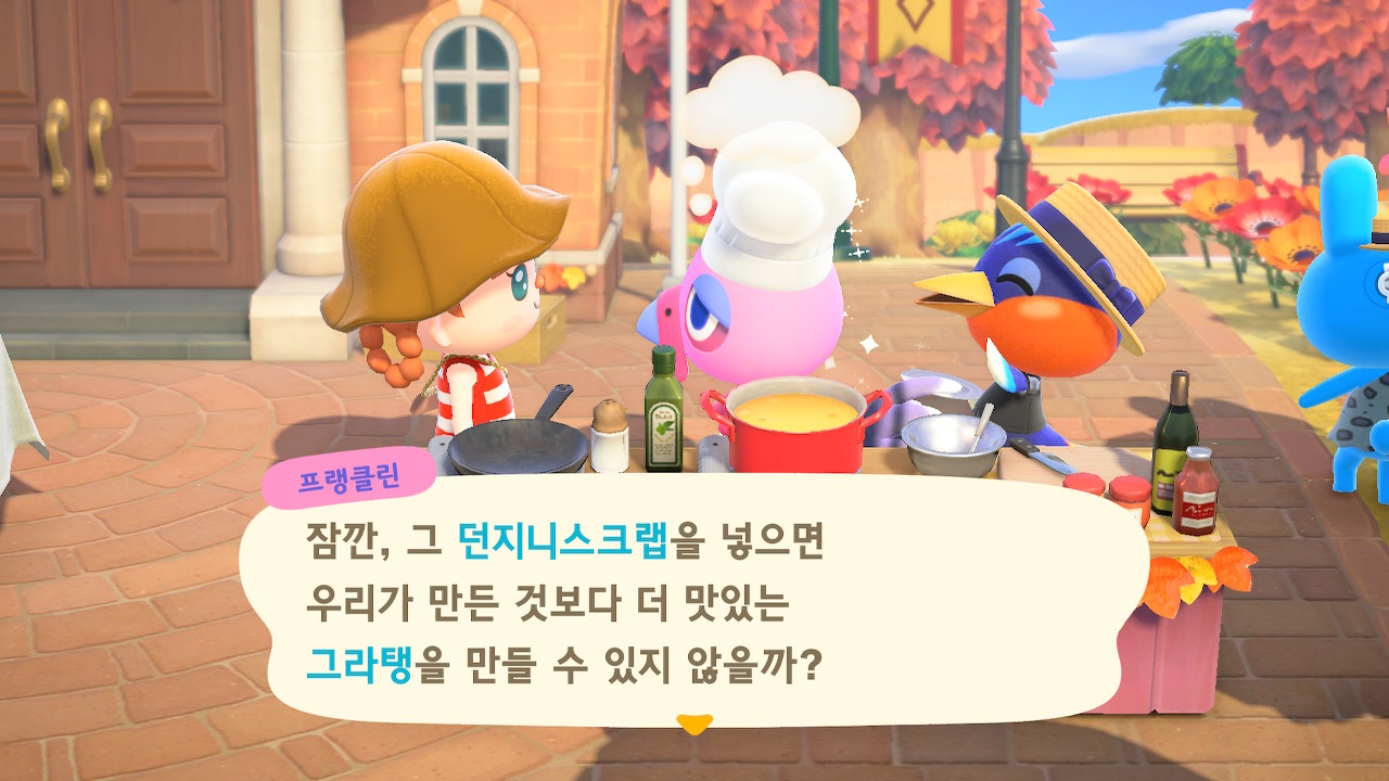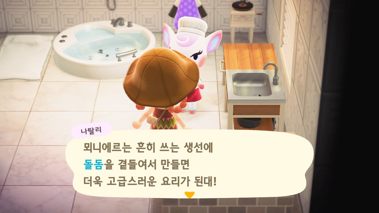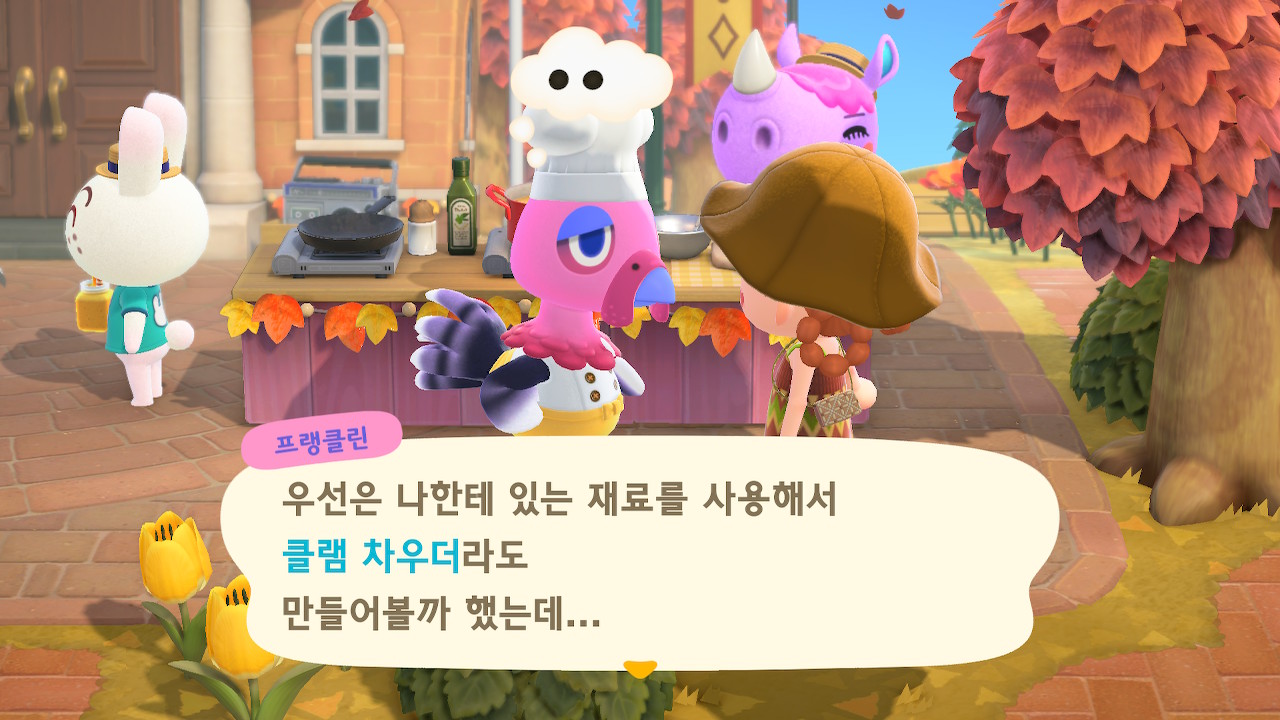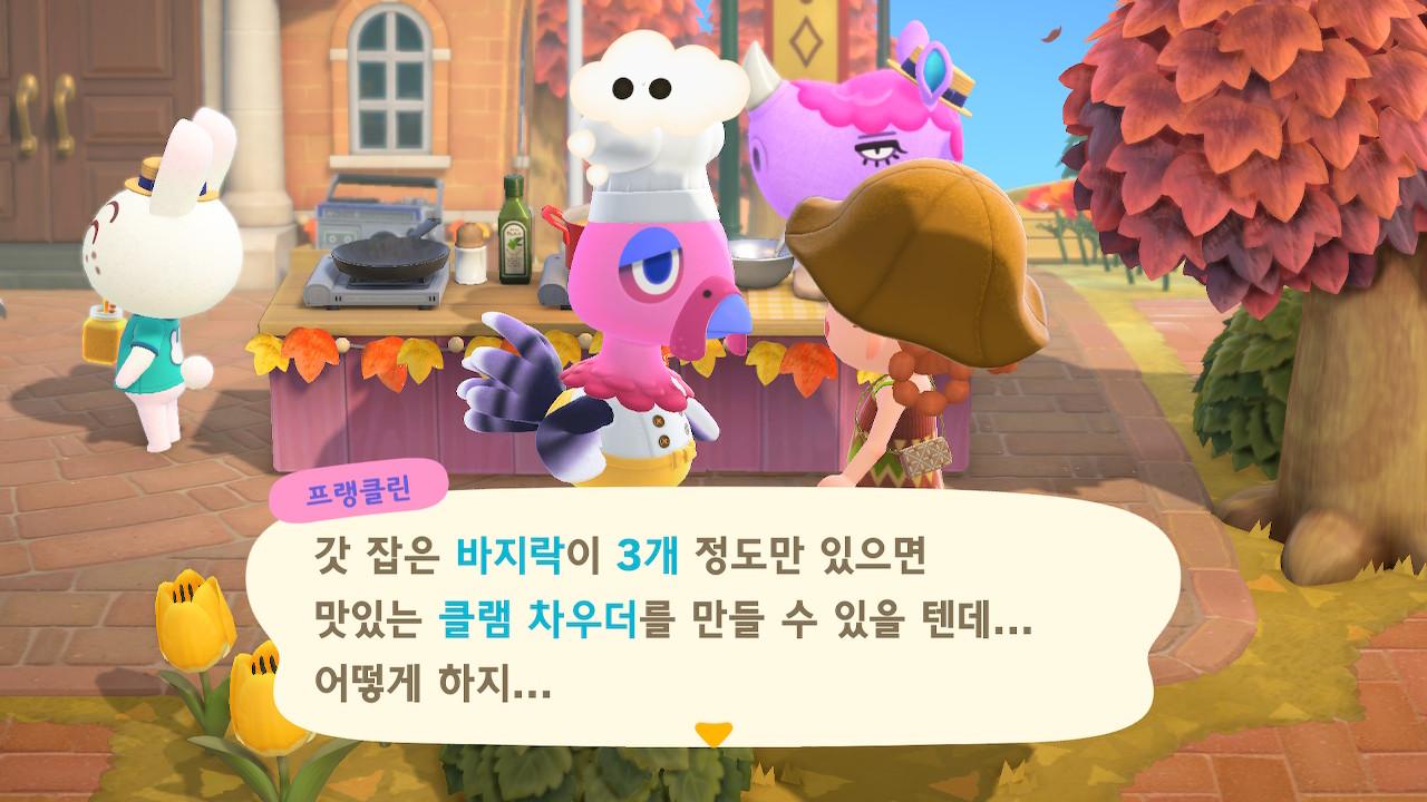 귀엽게 요리사 복장을 하고 요리하고 있는 주민을 발견할 수 있는데요
