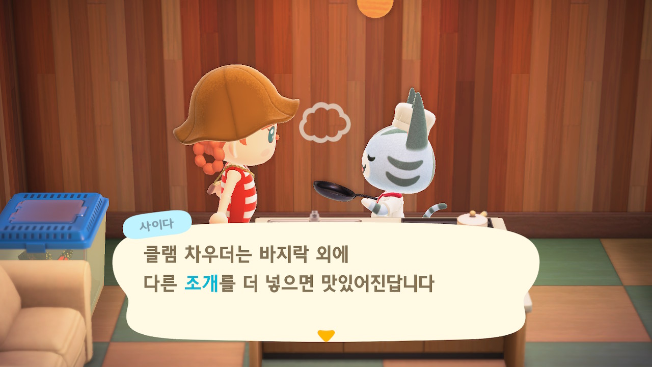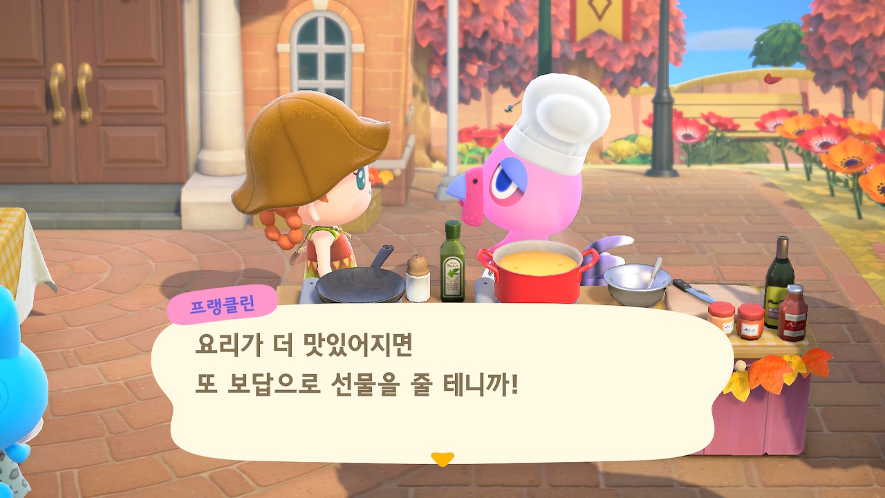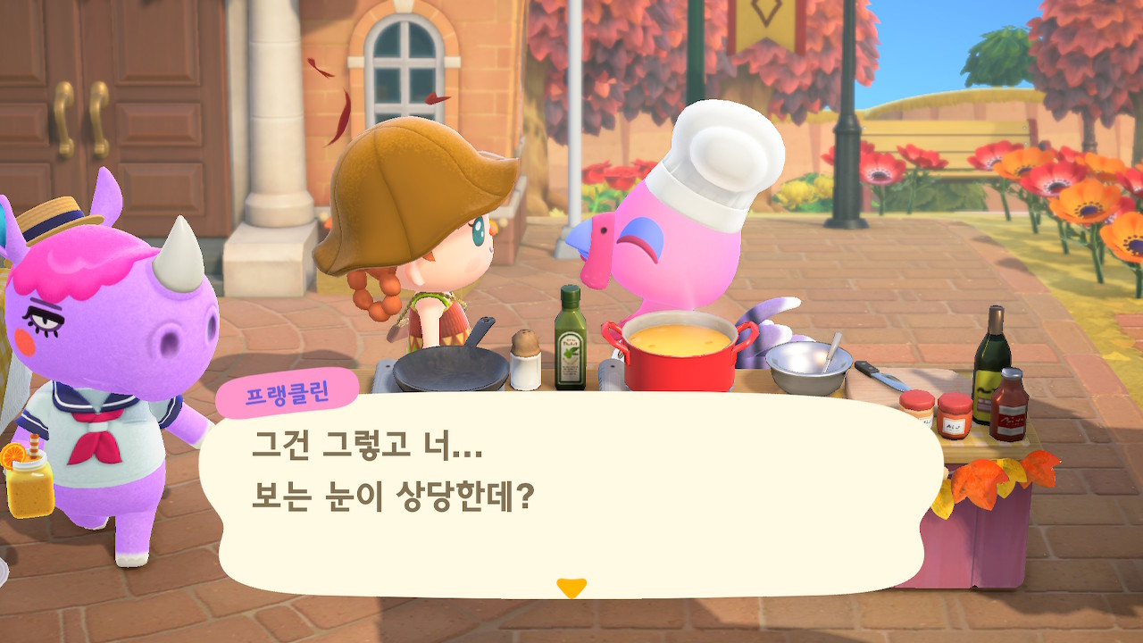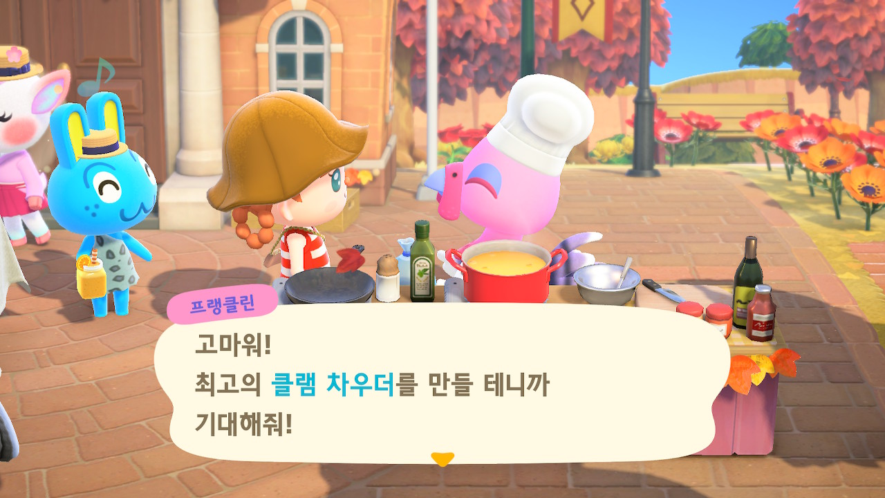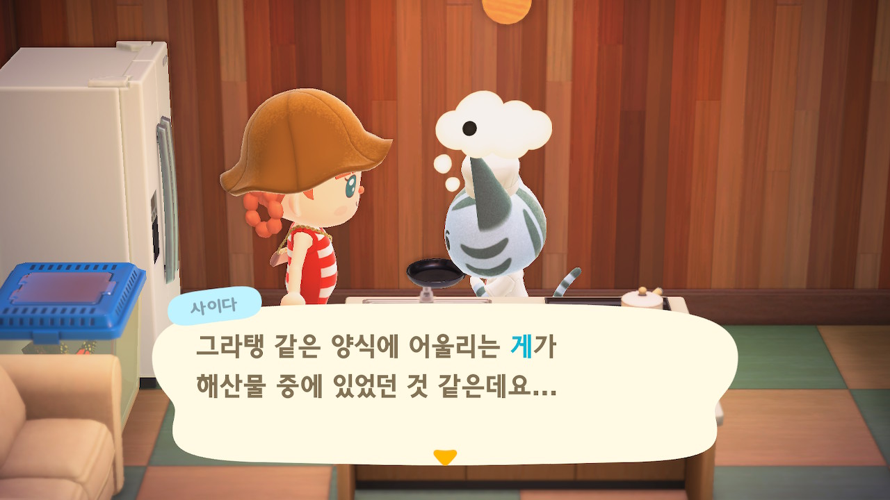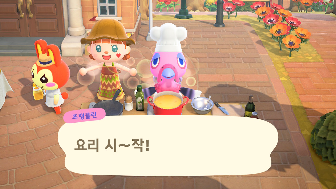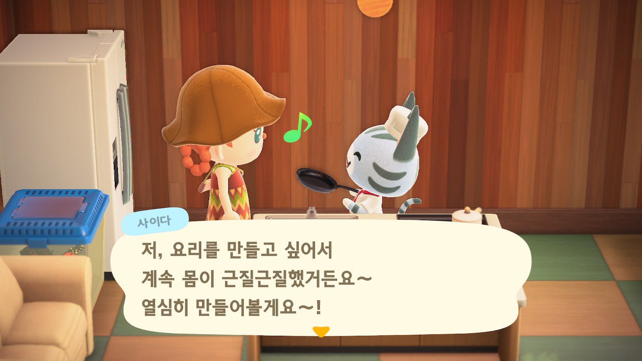 귀엽게 요리사 복장을 하고 요리하고 있는 주민을 발견할 수 있는데요