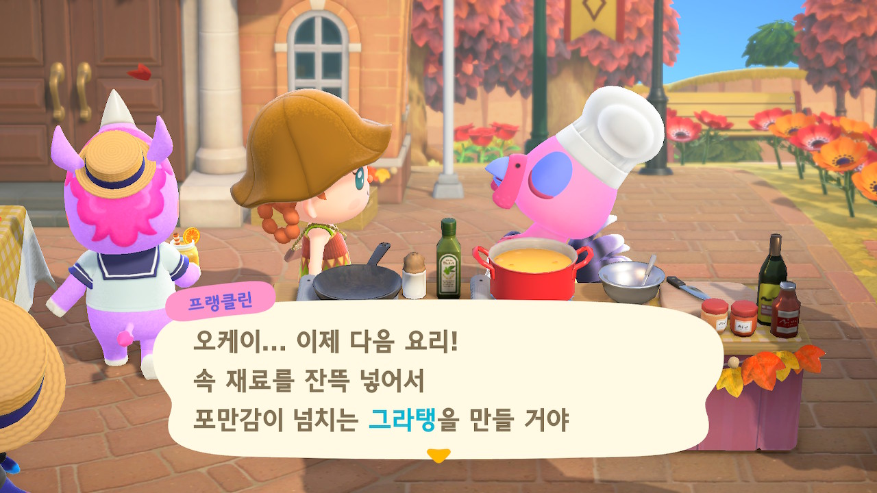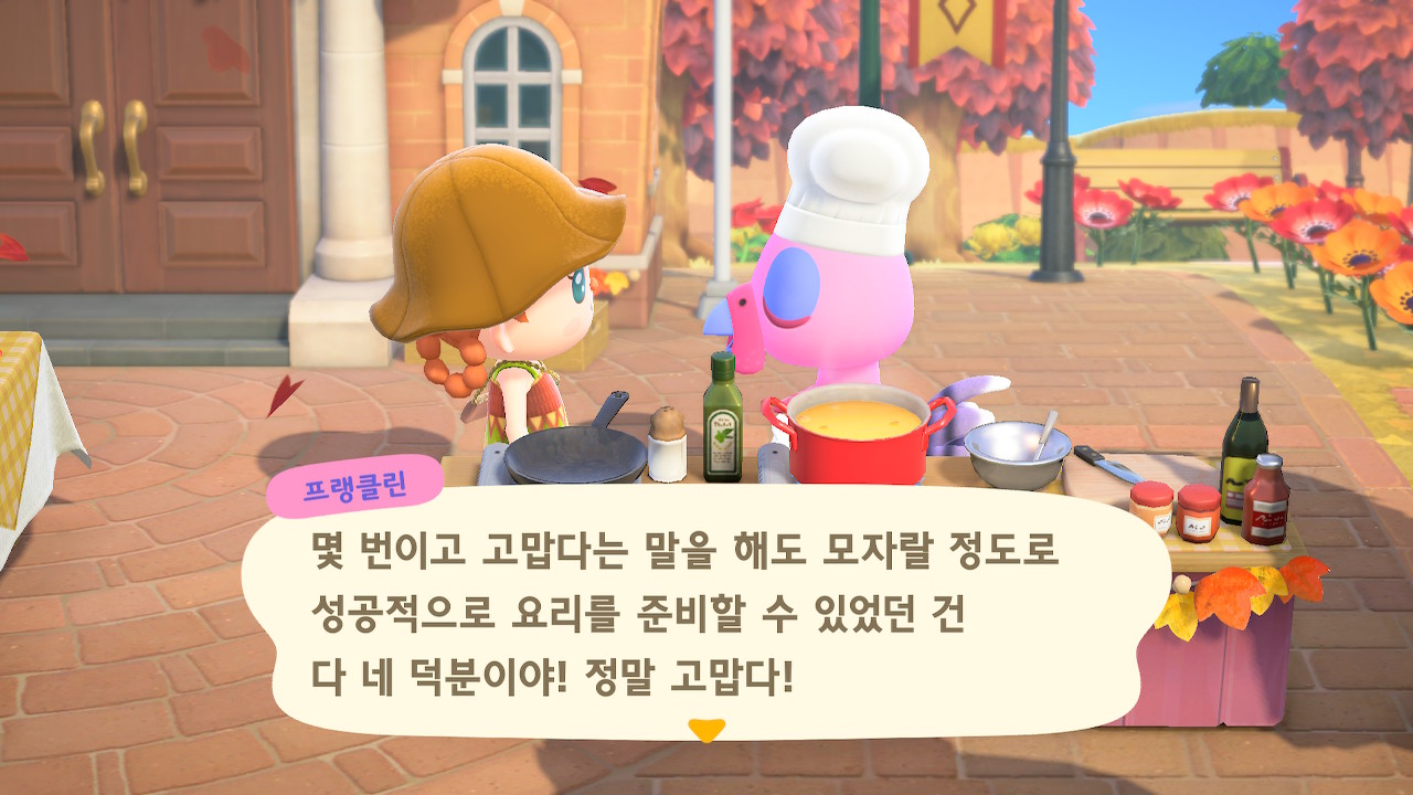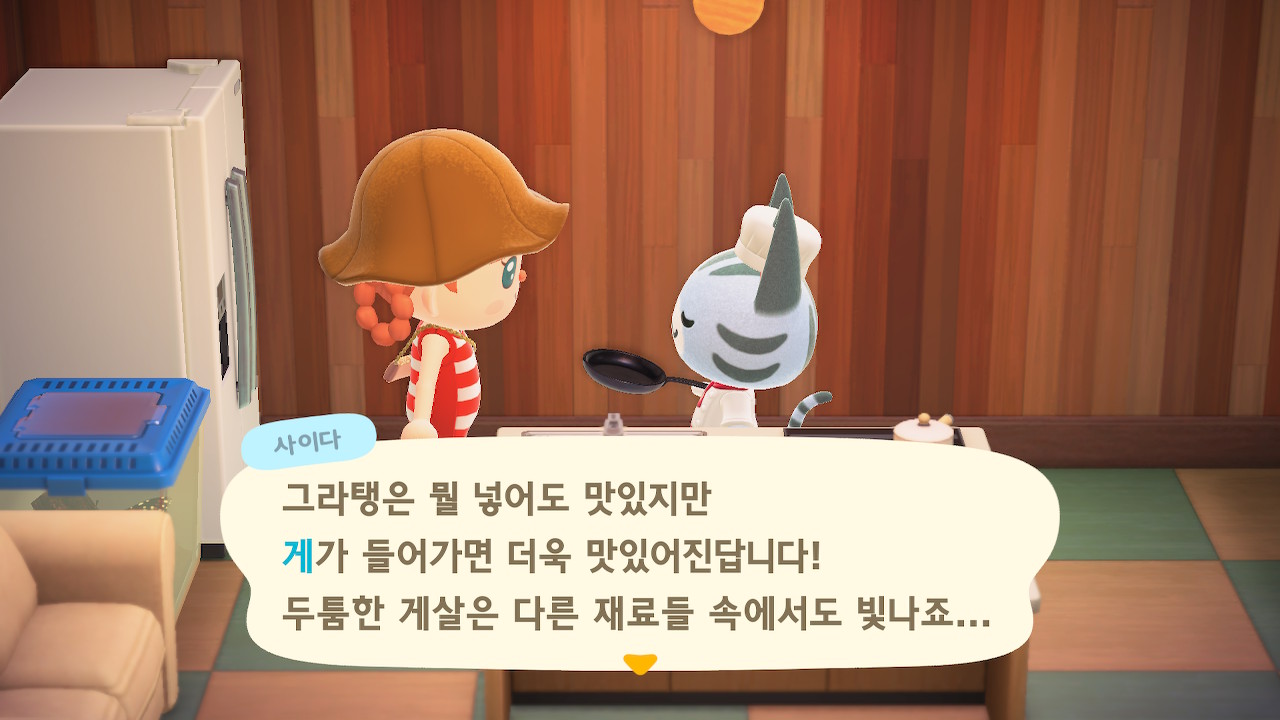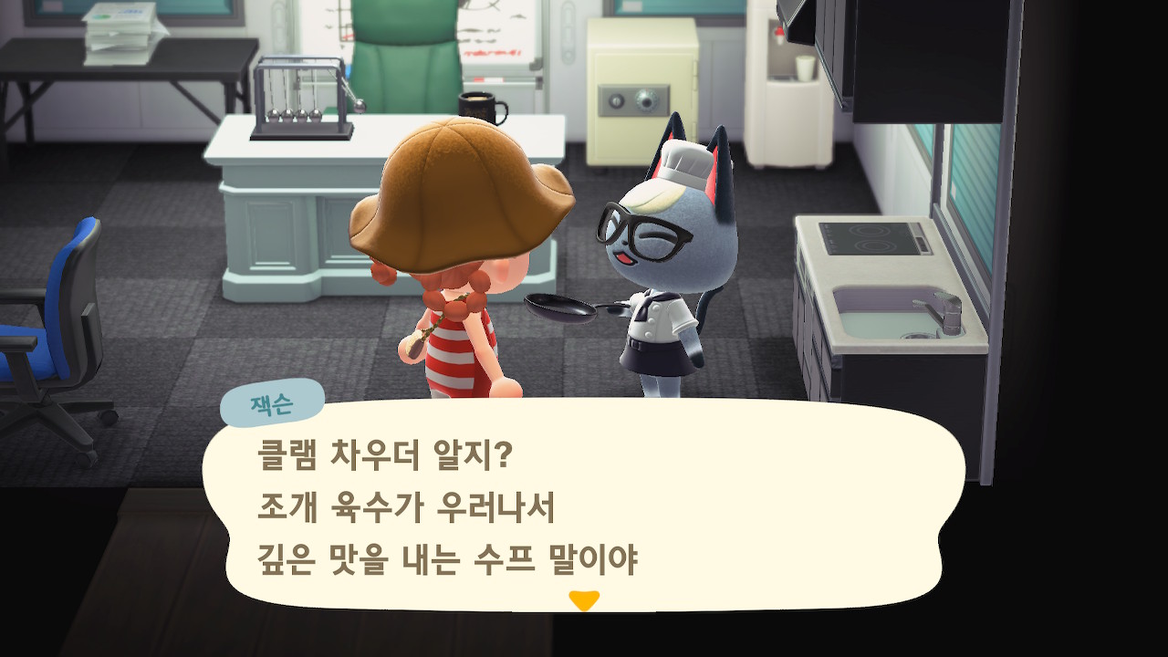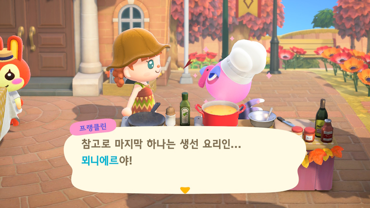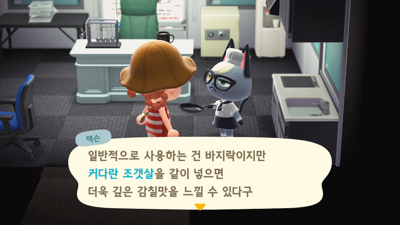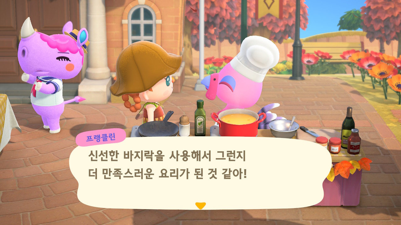 귀엽게 요리사 복장을 하고 요리하고 있는 주민을 발견할 수 있는데요