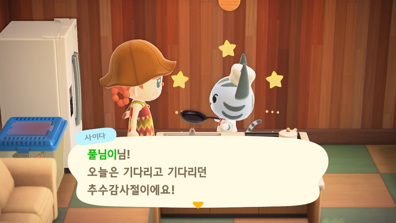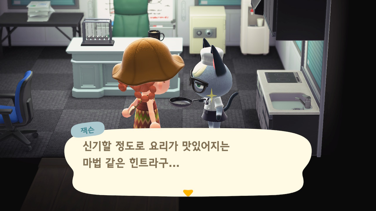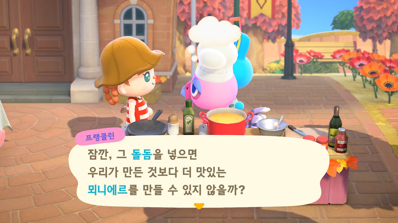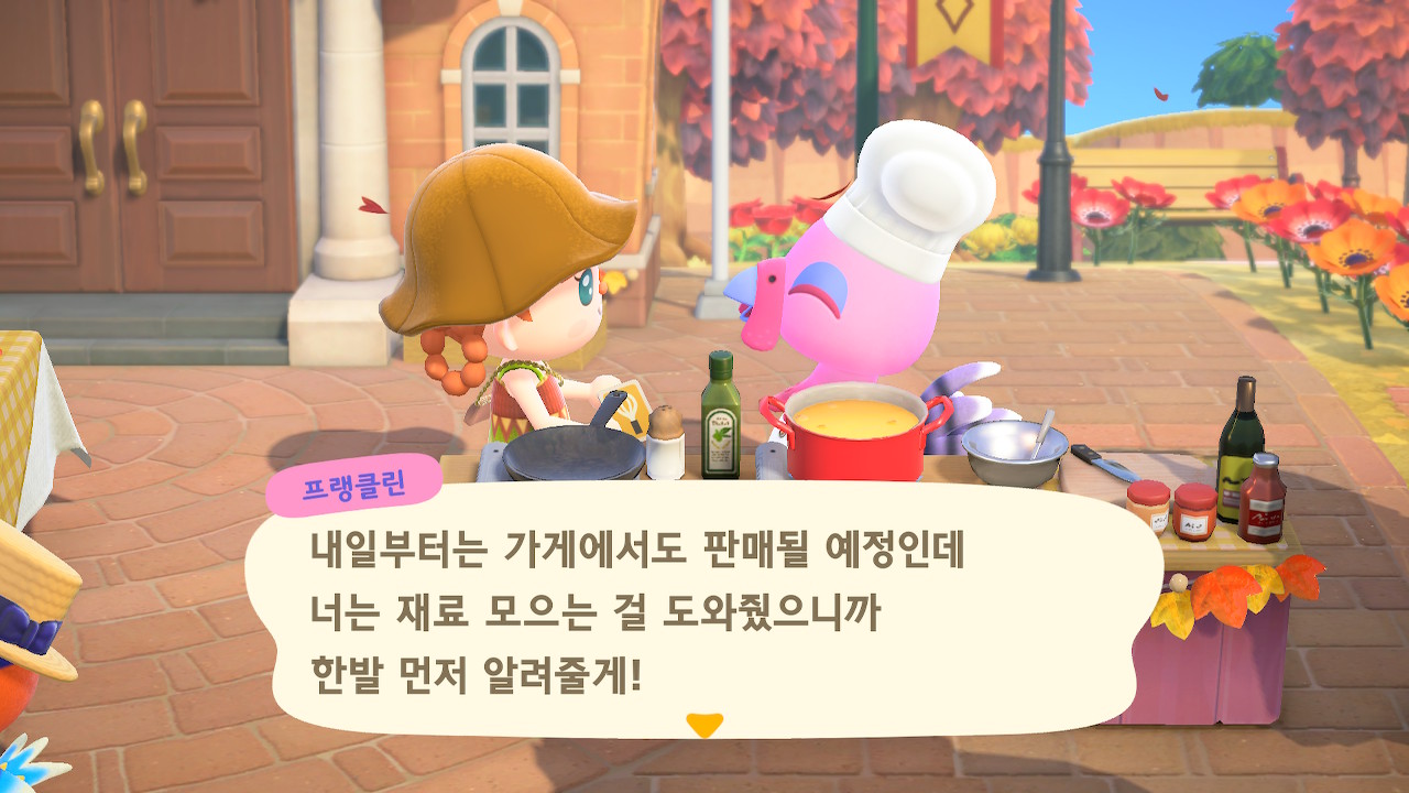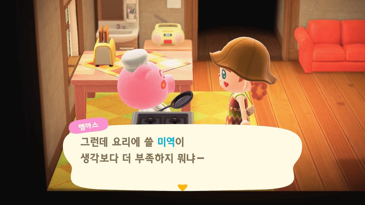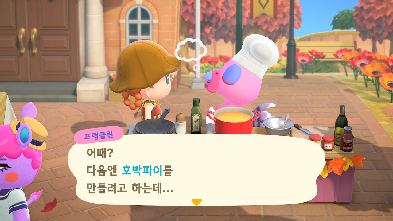 귀엽게 요리사 복장을 하고 요리하고 있는 주민을 발견할 수 있는데요