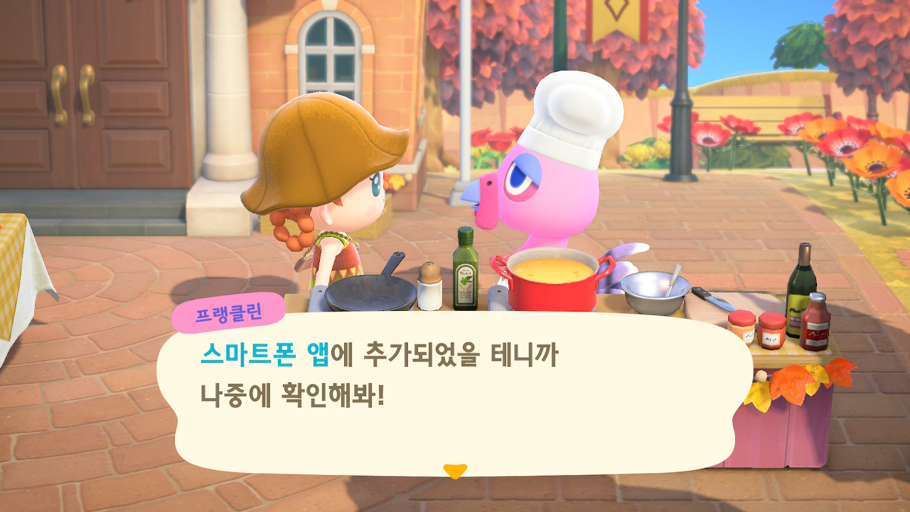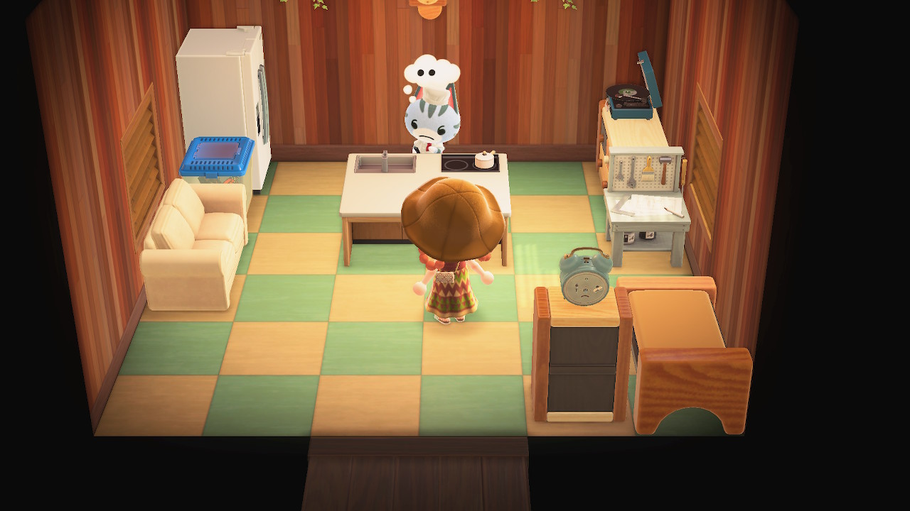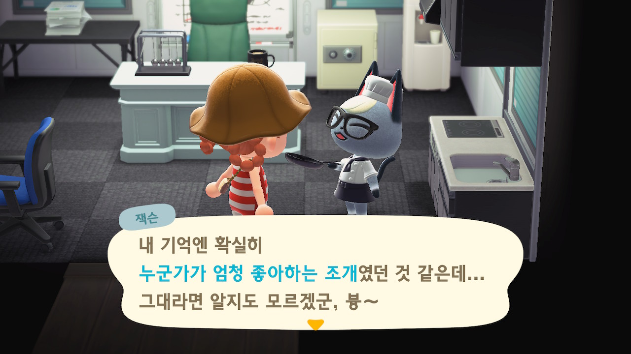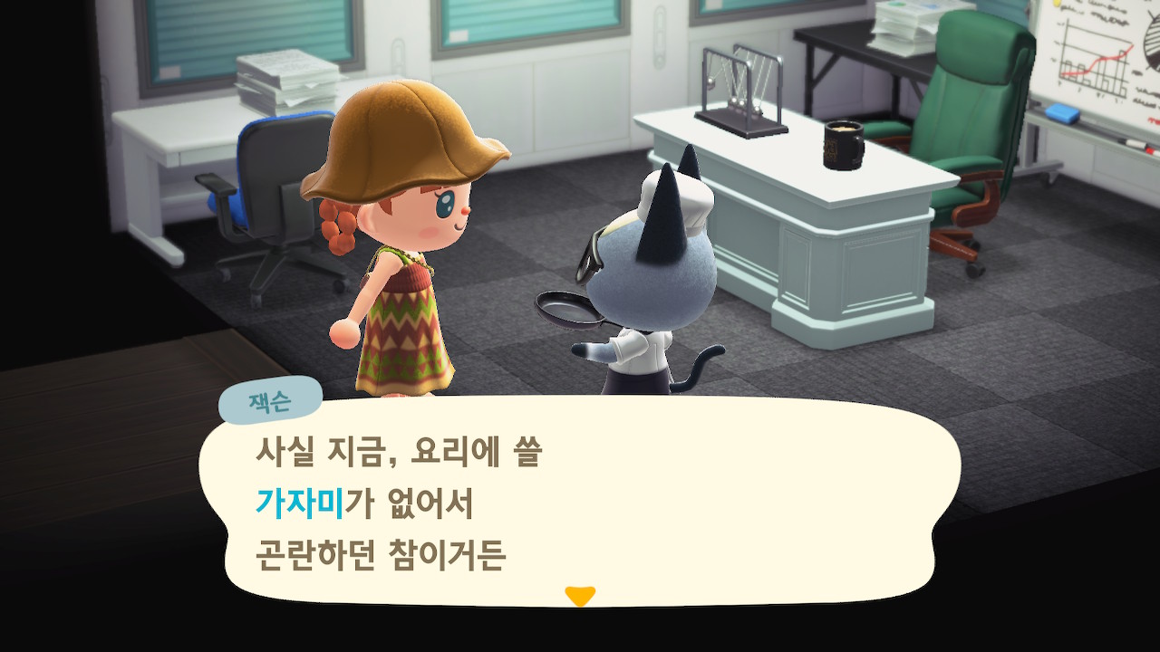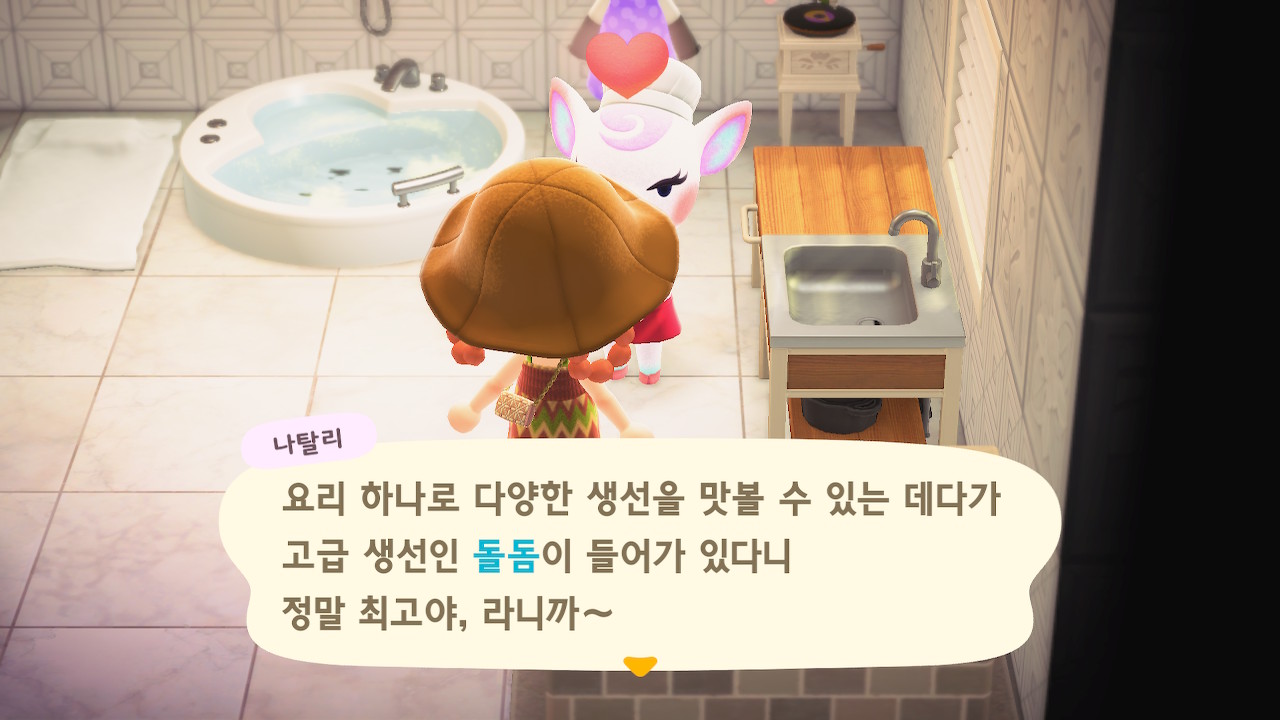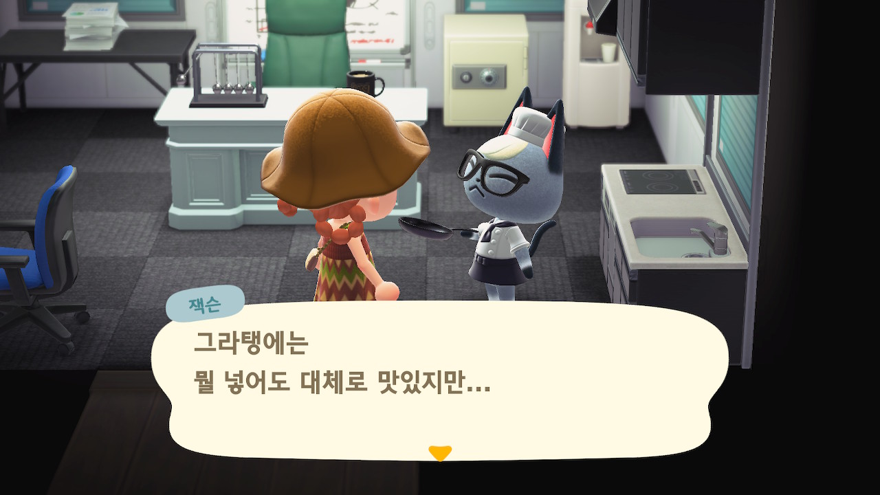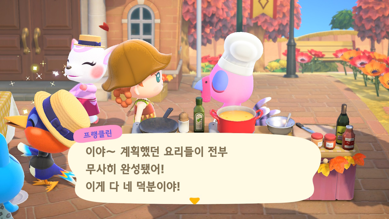 귀엽게 요리사 복장을 하고 요리하고 있는 주민을 발견할 수 있는데요