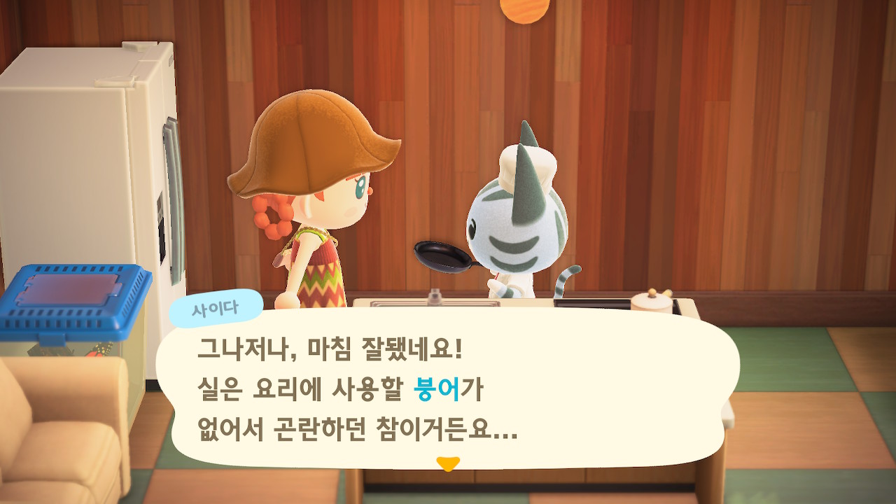 시간이 되어 말을 걸면 이렇게 요리 재료를 가져와달라고 직접적으로 이야기하진 않지만