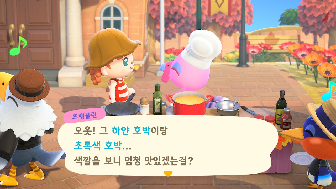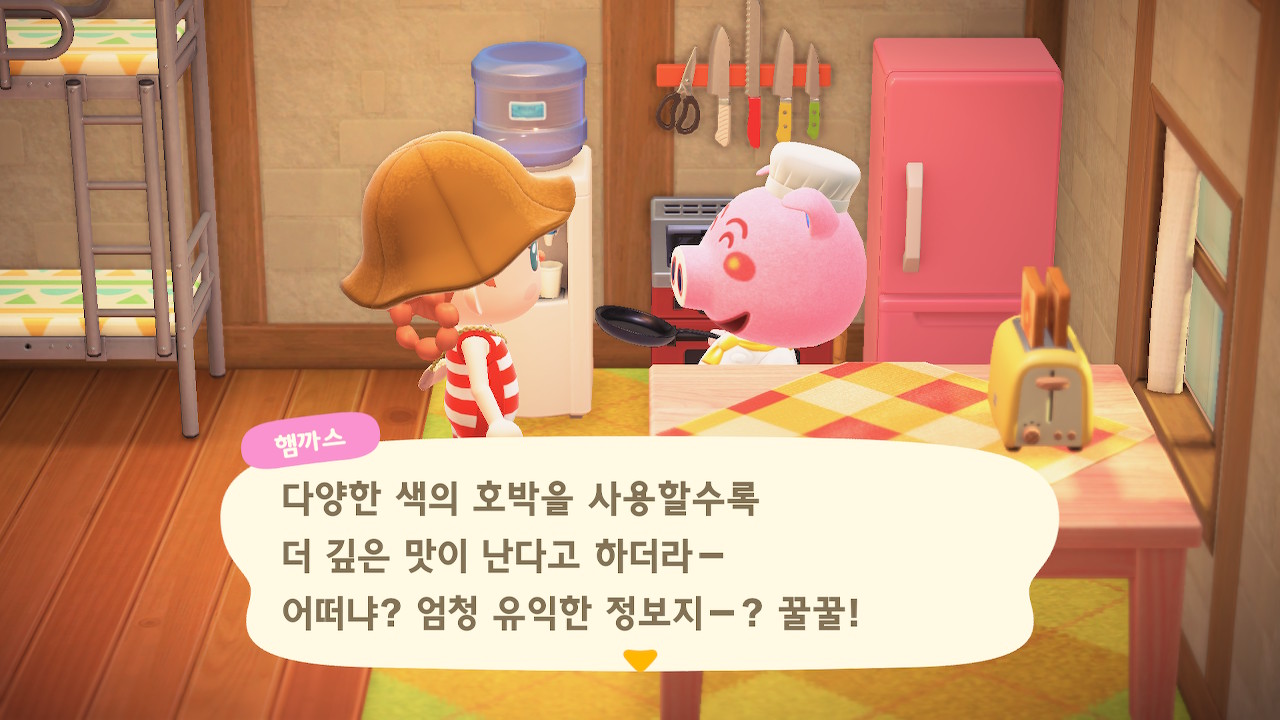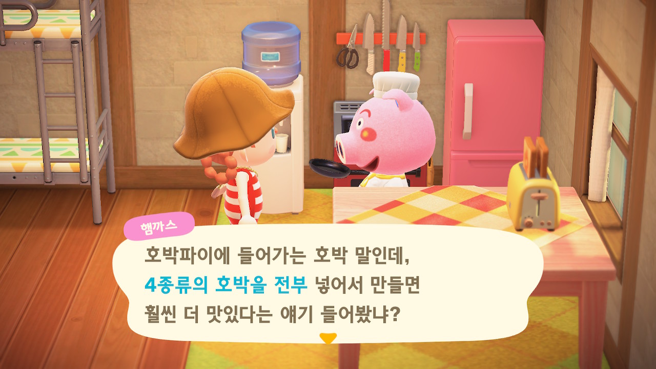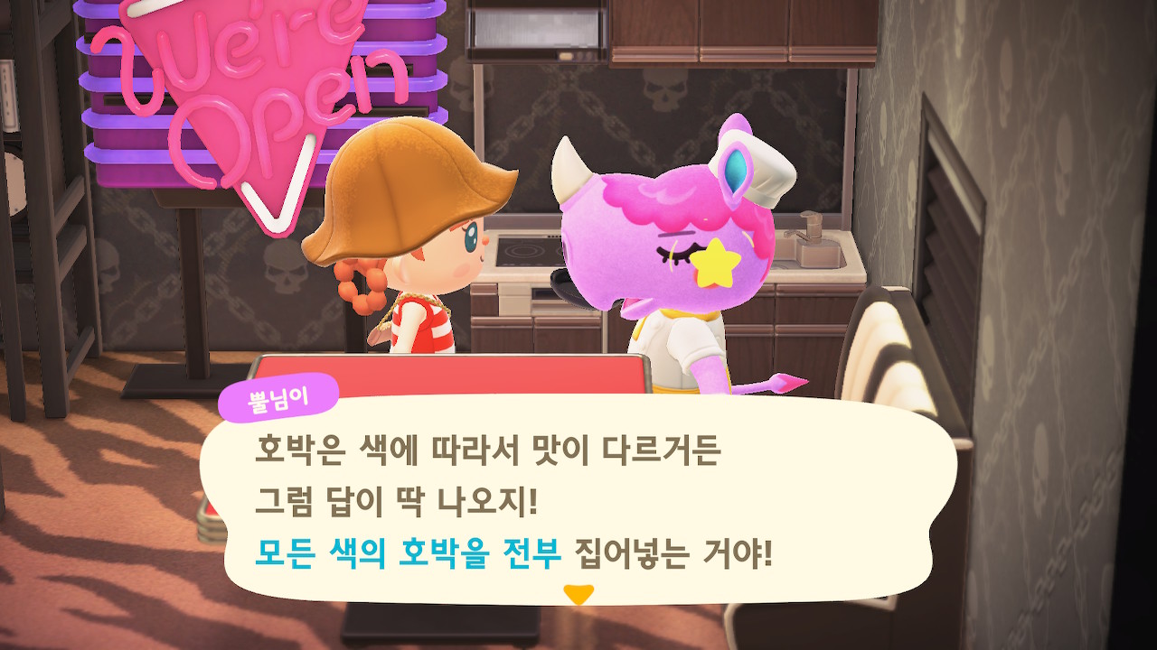 호박밭이 없더라도 집에 들어가 있는 주민들에게 재료를 조달하고 다양한 색깔의 호박을 얻을 수 있습니다!