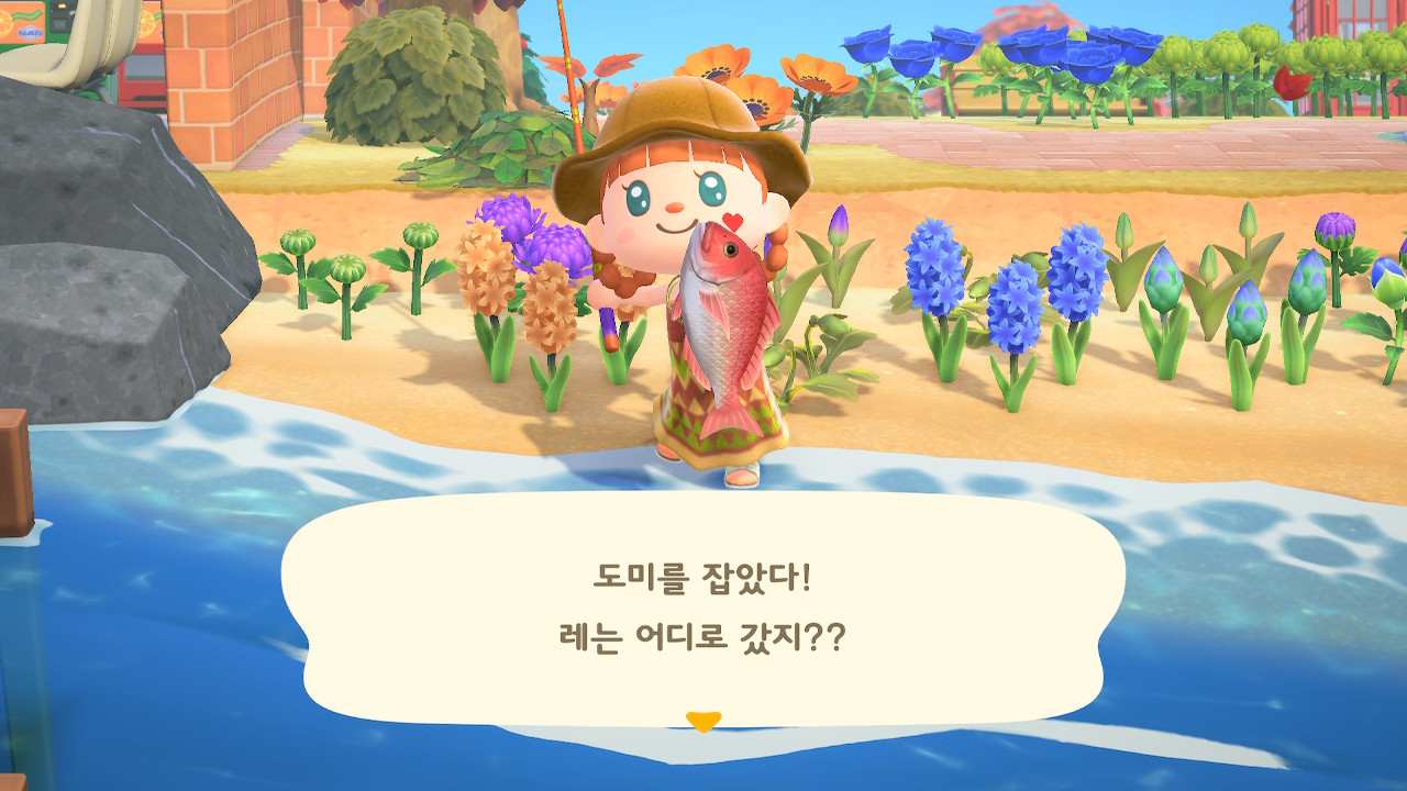 험난한 낚시 노가다 후에 드디어 주민이 원하는 재료를 잡고 나면