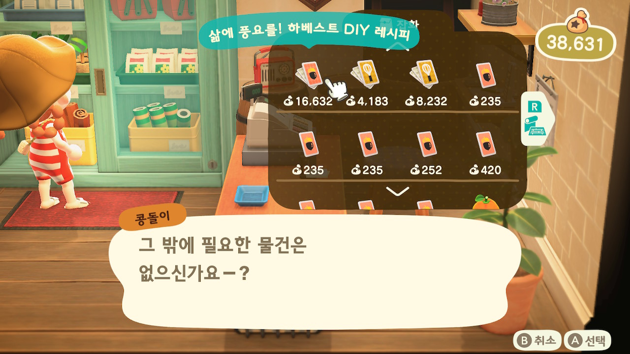 너굴 가게에서도 추수감사절 요리 레시피를 판매하기 때문에(추수감사절 하베스트 레시피 포함)